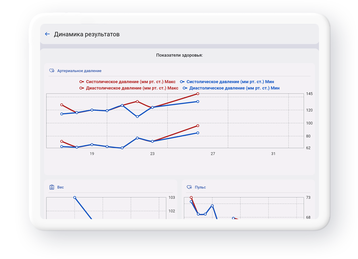 отслеживание показателей здоровья в режиме реального времени (сразу после получения данных с устройств они доступны врачу)